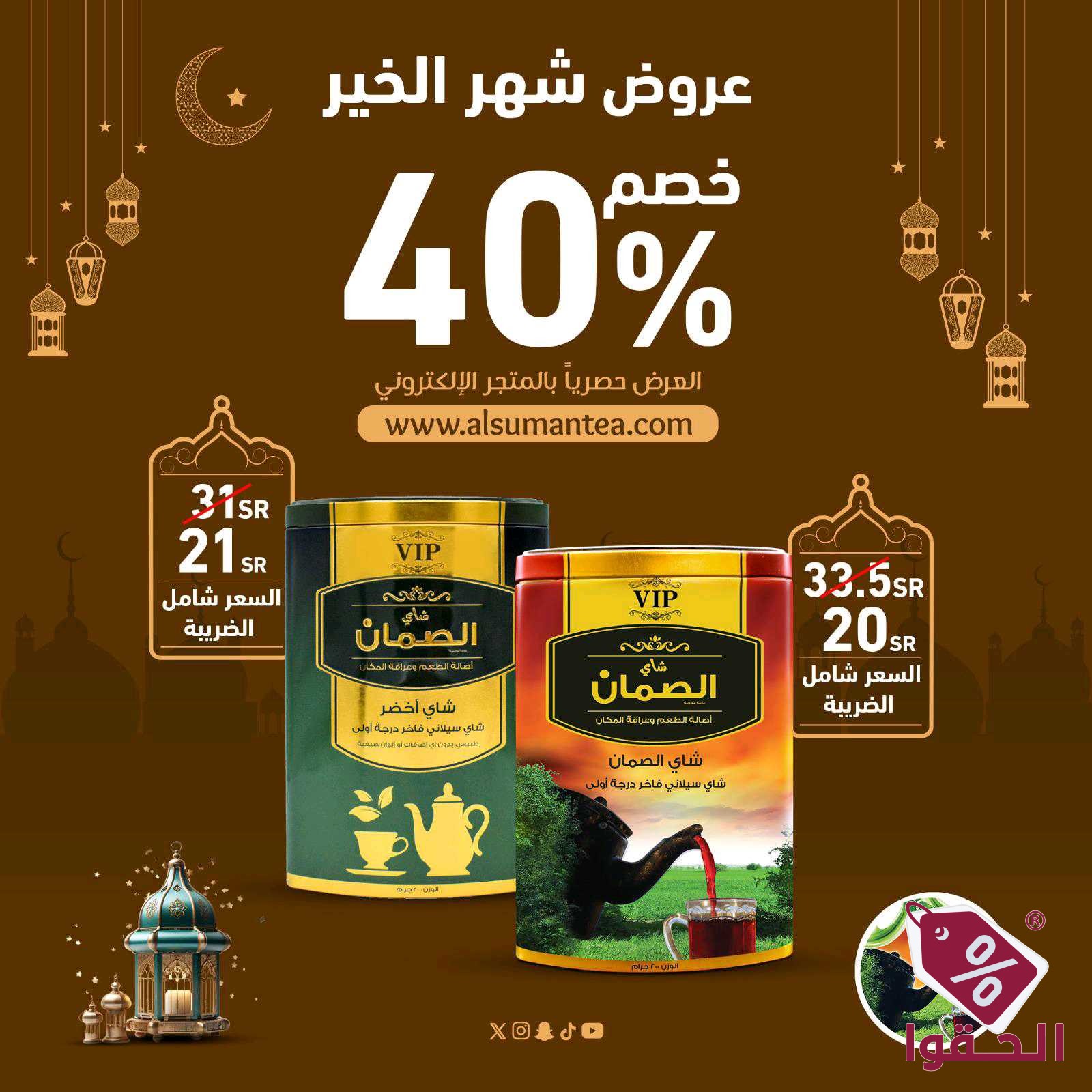 كل المنتجات متوفره بخصم 20٪ وحتي ٤٠٪ لبعض الأصناف علي المتجر الالكتروني.. طلبات الجمله والقطاعي www.alsumantea.com