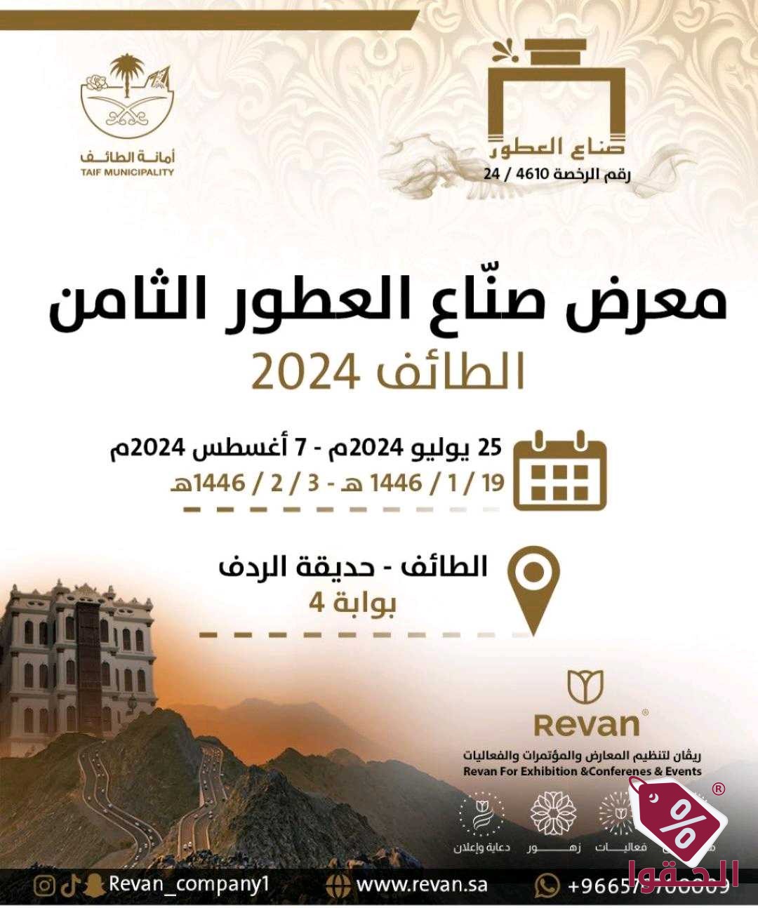 الحقوا على معرض (صناع العطور الثامن) الموقع _ الطائف _ الردف _ بوابة رقم 4