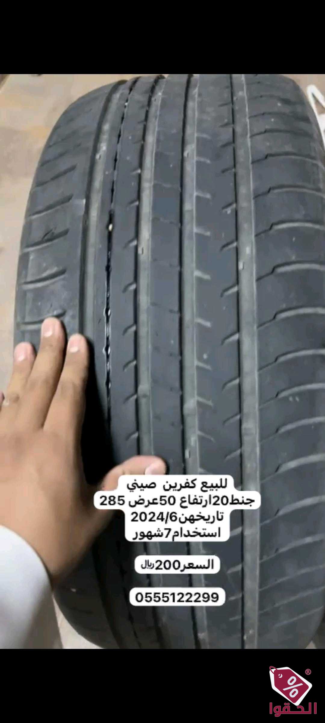 للبيع كفرين صيني جنط ٢٠ ارتفاع ٥٠ عرض ٢٨٥ تاريخ ٢٠٢٤/٦ استخدام ٧شهور البيع٢٠٠﷼ 0555122299