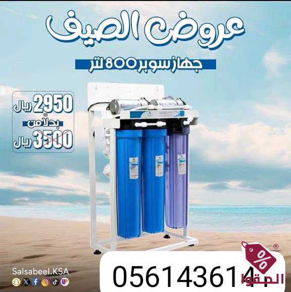 اختيارتنا بعناية ليصلك آعلى منتج بدون ما تحتار وين الافضل 👌 مع اعلى فتره ضمان لحق عروضنا الآن اعلى جودة , اقوى ضمان , وصيانة لين بيتك🌝 1_وفر تكاليف الماء التدفعها شهرياً . 💸 2_ وفر جهدك في شيل وحط الكراتين. 😓 3_وفر وقتك وريحت راسك من شراء الماء ⏳ كل هذا وانت تشرب ماء صحي 100٪ مدى الحياه🤩 ✨ جهاز تحليه 7 مراحل الان 600ريال 🚗 شامل الضريبه والتوصيل والتركيب ✨ ضمان 5 سنوات ⚜️جهاز النانو تكنولوجي 9 مراحل 900 ريال مع قاروره للبرادة مجاناً ♻️ شامل الضريبه والتركيب 🎖 ضمان 10سنوات 🎗 يحتوي علي وحده تحكم بالاملاح ⚜ انتاج يومي 300 لتر ⚙ صيانه دوريه كل 6 شهور يحتوي على فلاتر دقيقة ليعطيك اعلى جوده نقاء عن الاجهزة التقليدية حاصل على شهادة الولايات المتحدة iso 📞للطلب او الاستعلام0561436141 📲