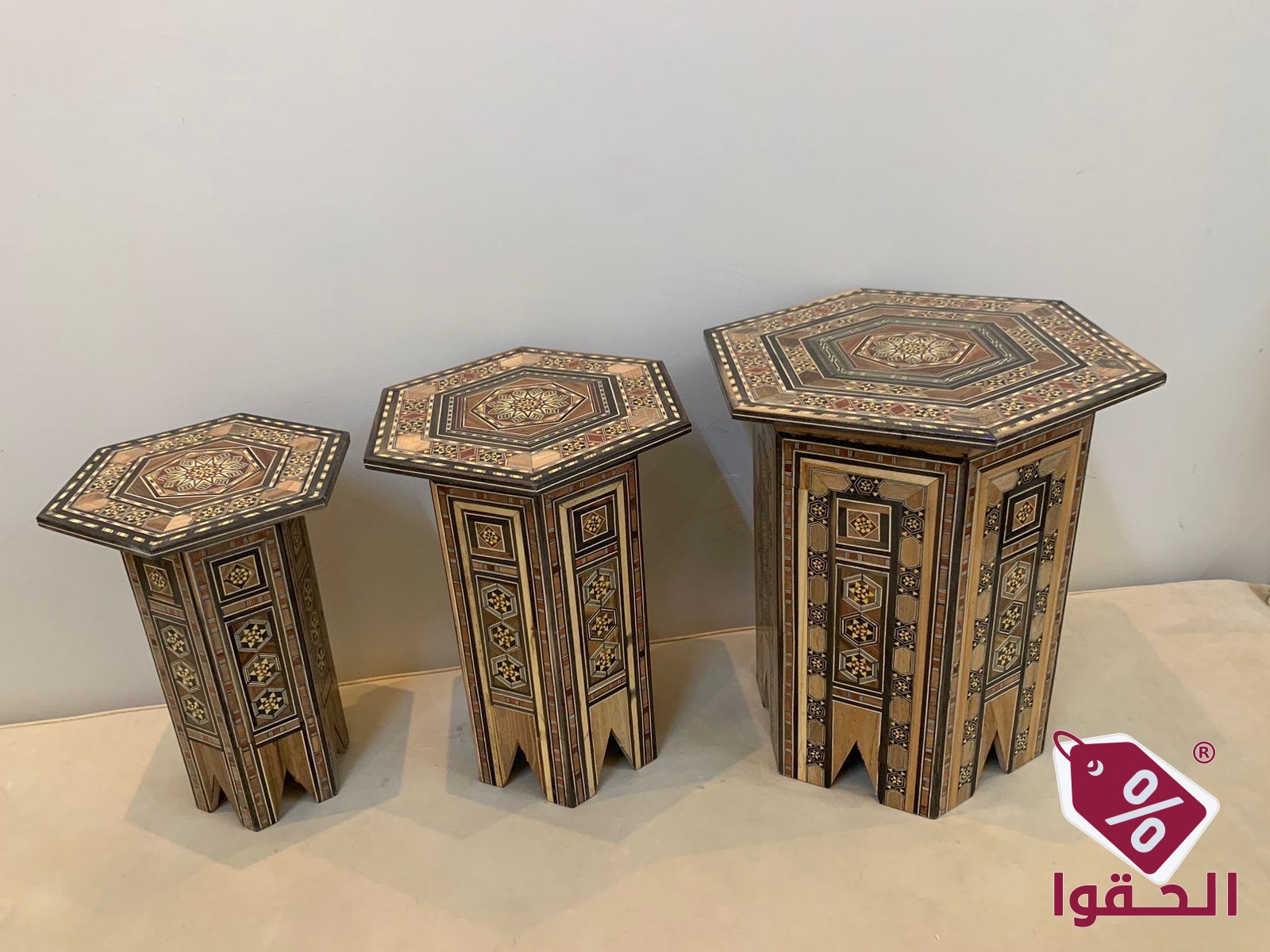 طقم طاولات خشب تراثي مصنوع يدوي بشكل فاخر ومميز