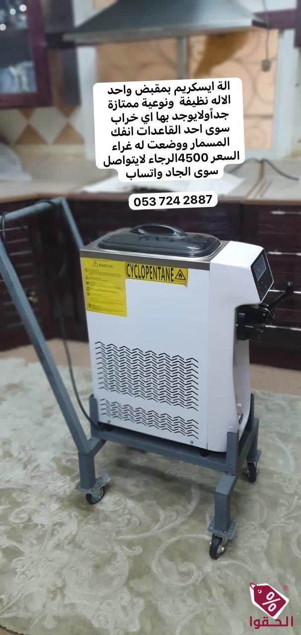 يوجد الة ايسكريم مع العربيه للبيع بمقبض واحد حوض واحد لايوجد فيها اي عيب نوعيتها جداً ممتازة اقتصادية في الكهرب والخليط وسهلة الحمل مواصفاتها 1. الوزن والمقاسات: - الوزن: 43 كجم. - المقاسات: 21*55*74 سم. 2. القوة والكمبروسر: - القوة: 900 واط. - الكمبروسر: امبريكو الصناعة البرازيلية الأصلي مع ضمان لمدة سنتين. 3. الإنتاجية: - الإنتاجية: 25 كوب في الساعة. 4. المواد والتقنيات: - الحوض: مصنوع من الستانلس ستيل المقاوم للصدأ، مما يضمن النظافة والتحمل. - المضخة الهوائية: تضخيم الآيس كريم وتوفير كميته بكفاءة. 5. الملحقات: - تتضمن ربلات إضافية وأشكال لتشكيل الآيس كريم مجانًا، مما يمنحك تنوعًا وإبداعًا في إعداد الآيس كريم.