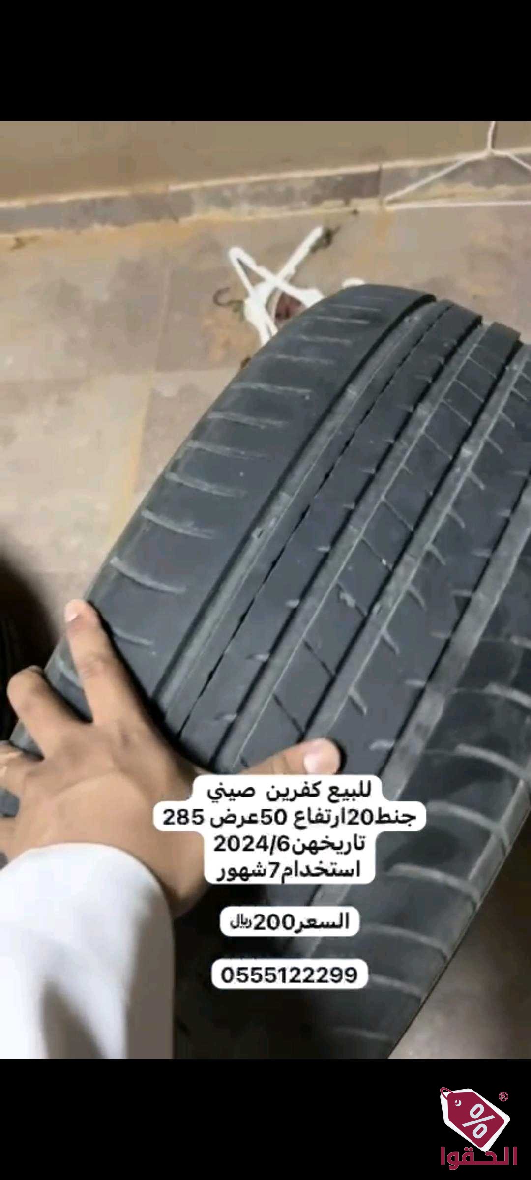 للبيع كفرين صيني جنط ٢٠ ارتفاع ٥٠ عرض ٢٨٥ تاريخ ٢٠٢٤/٦ استخدام ٧شهور البيع٢٠٠﷼ 0555122299