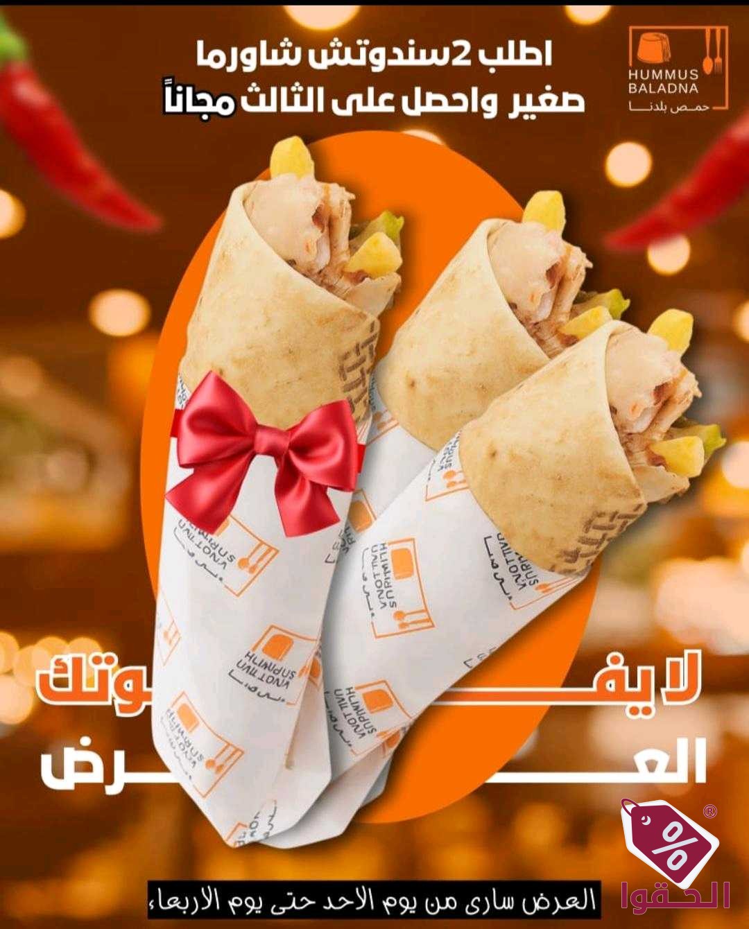 الحقوو عرض على الشاورما اطلب حبتين والثالثة مجان العرض ساري من الاحد حتى الاربعاء تاريخ 28_1_1447 الموقع حي الروضة شارع خالد بن الوليد للإستفسار ج 0539771564
